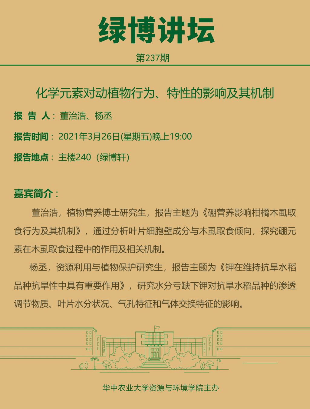 【绿博讲坛】化学元素对动植物行为、特性的影响及其机制