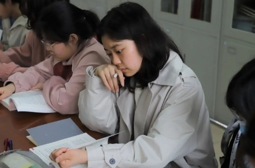 环工1802班葛祎婷于4月1日参加了此次活动。看到工作人员准备了一整套《毛泽东选集》,她感到很惊喜。当谈到读书的收获时,她说:“《苏联利益和人类利益一致》这篇短短几千字的文章,一个小时的时间也不足以让我完全理解,足可见毛主席思想之深厚是我难以望其项背的,更激励了我加强此方面的学习,也希望以后能够有有更多机会继续参加此类活动。”