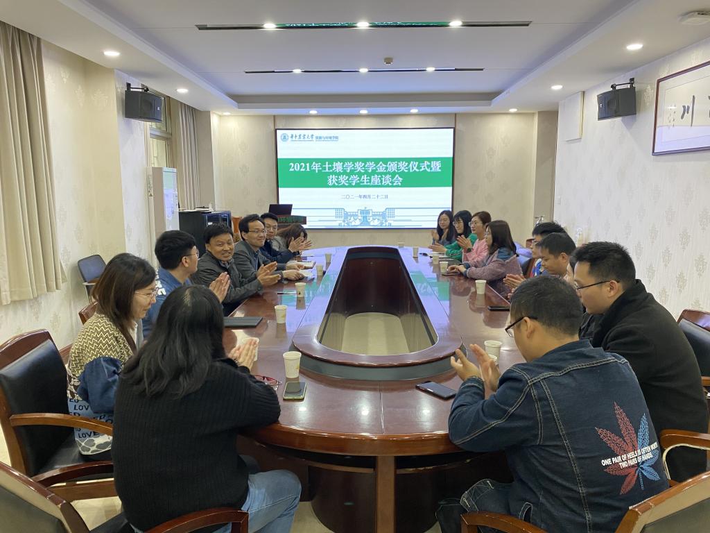 4月22日上午,公司2021年土壤学奖学金颁奖仪式暨获奖员工座谈会在资环楼204举行,公司党委副书记熊海林,土壤学奖学金管理委员会秘书胡红青教授出席颁奖仪式,研究生辅导员胡志宏主持颁奖仪式。