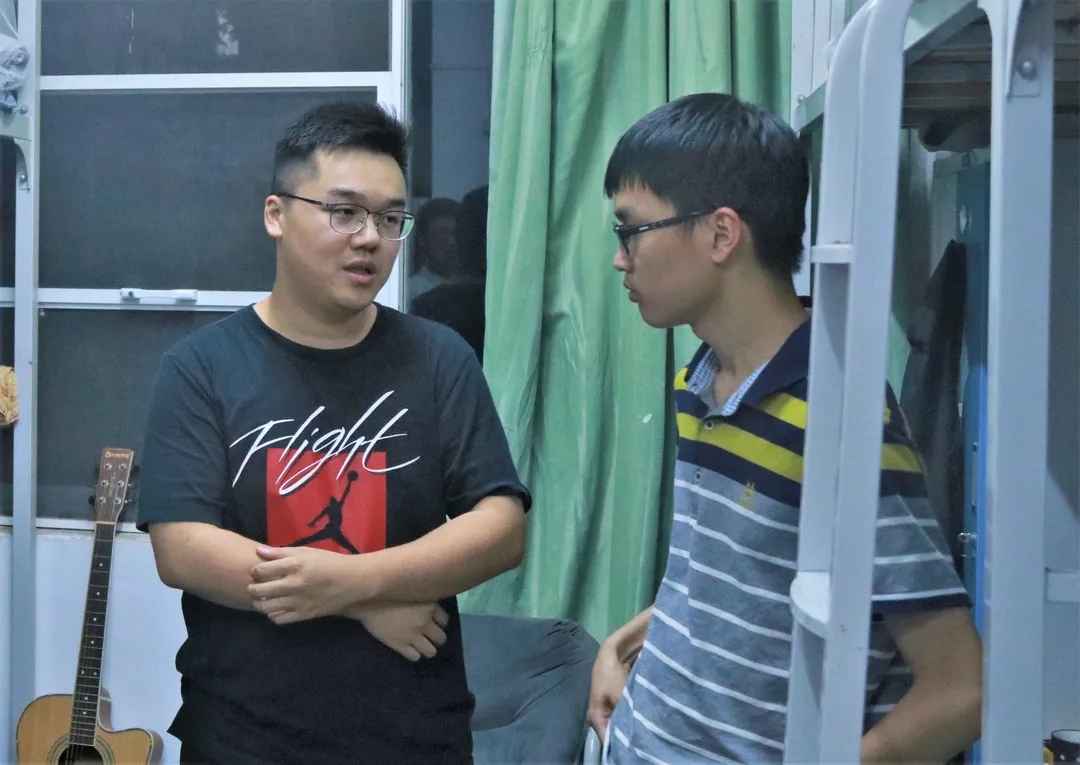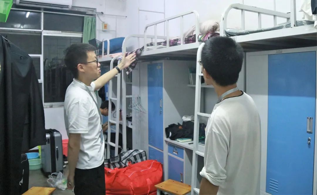 辅导员许泽远老师参与到了本次值班服务中来,陪伴了同学成长的他也走入宿舍楼,和值班党员一起给这些即将奔赴远方的毕业生们带来温暖和美好的希冀。走进寝室的他们认真地进行寝室巡查,树立了党员的先锋模范形象。