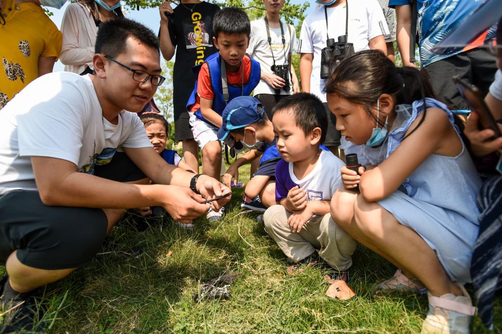 老师给小朋友讲解鸟类知识。记者许魏巍 摄