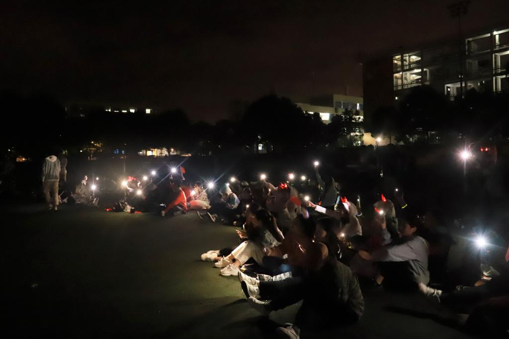 10月6日晚,国庆荧光跑活动在东运动场开跑,而在荧光跑的终点——公司西运动场,“国庆草坪歌会”早已“等待”即将到来的资环师生们。