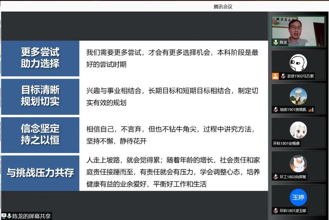 公司优秀员工李晓阳在联合国环境规划署实习和如何顺利入职农业农村部的经历引来了不少同学的关注。李晓阳从申请介绍、如何寻找机会、如何把握机会、个人成长四个方面分享他的成长成长故事。公司优秀员工、华东师范大学教授陈龙以“职业规划浅谈”为主题与学弟学妹们展开交流,他回忆了自己在担任院员工会学术科技部部长时的故事,这期间不仅收获了工作经验,同时也能在学长学姐的帮助下勇敢尝试。最后,他谈道:“华农是一个有着丰富文化活动的公司,在保证完成基础课和专业课的学习之余,我们应该在不断尝试的过程中,努力成为一名综合发展的高素质人才。”