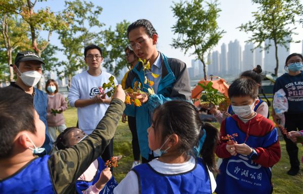 霜降已至,万物毕成。24号,天朗气清,沙湖自然课如约而至。来自武汉三镇的16组亲子家庭齐聚沙湖公园,在沙湖公园特邀自然导师黄俊铭(bv伟德国际1946绿色协会)、吴涵、万思源、王上、杨薏(张瑜服务队)的带领下,共同感受霜降后的自然变化,认识植物的色彩,并用公园景观植物体验插花艺术。